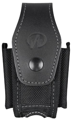 Nylon and leather belt sheath features Leatherman logo and snap closure. Features three pockets/slots for accessories and permits holstering of tool in open (pliers) position. Vertical and horizontal carry.Fits: Blast®, Charge® AL, Charge® Ti, Charge® XTi, Fuse Black, Kick Black, Kick®, Wave®, Blast Black, Charge ALX Black, Charge® ALX, Charge® TTi, Crunch®, Fuse®, Wave Black